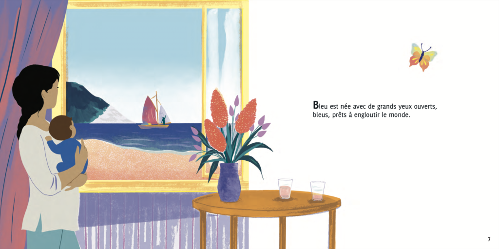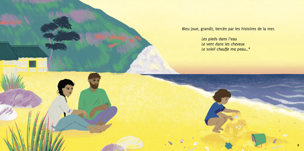 Bleu was born with big, blue eyes, ready to take in the whole world. She grew up listening to stories of the sea. One day, while hauling in the net with her dad, Bleu saw something glistening… It was a tiny little turtle! But in a flash of dust, the turtle turned into a pebble… The next day, her dad gave her a big hug and left…