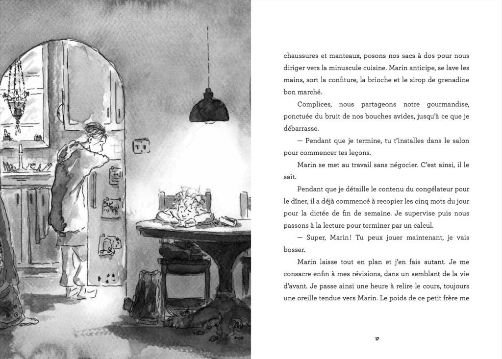 Depuis que sa mère est partie panser ses blessures, Éliette prend soin de son petit frère Marin. leurs questionnements et leur curiosité insatiable. Mais à 14 ans, jouer le rôle de parents lacunaires n’est pas une mince affaire. Surtout quand on veut éviter de rejoindre les services sociaux. Une traversée faite de doutes, de craintes, mais aussi de douceur et de lumière.